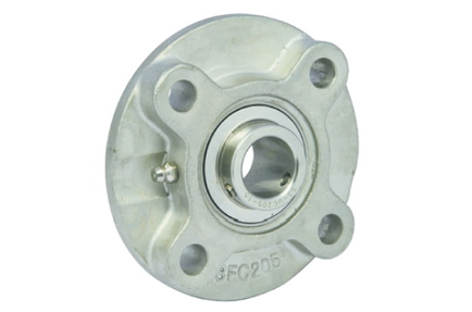 Zentrierende Edelstahl-Flanschlagereinheit für genaue Wellenausrichtung.